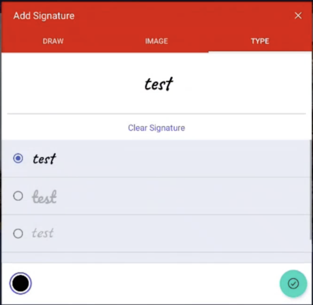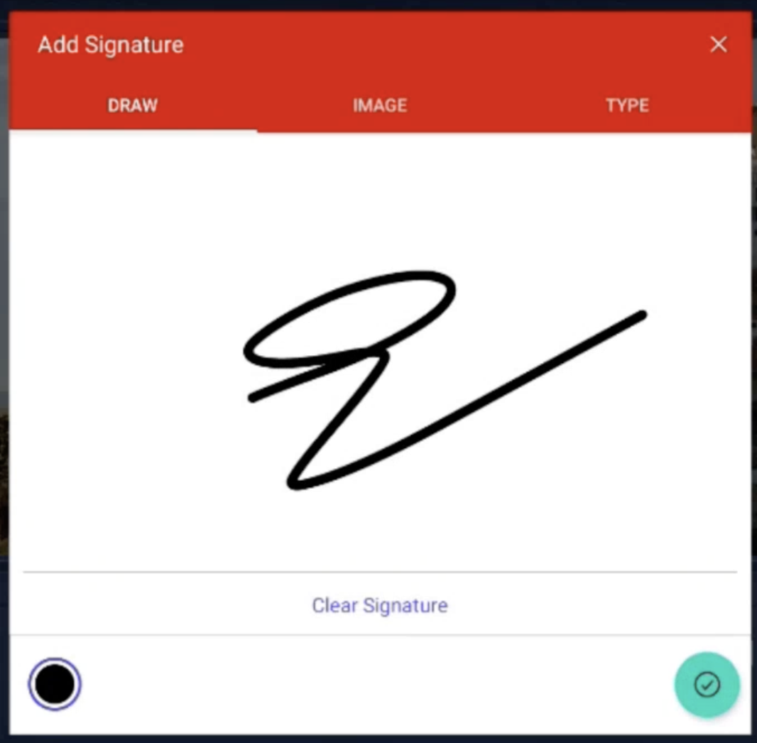 Optionally, change the signature colour using the option provided at the bottom left.