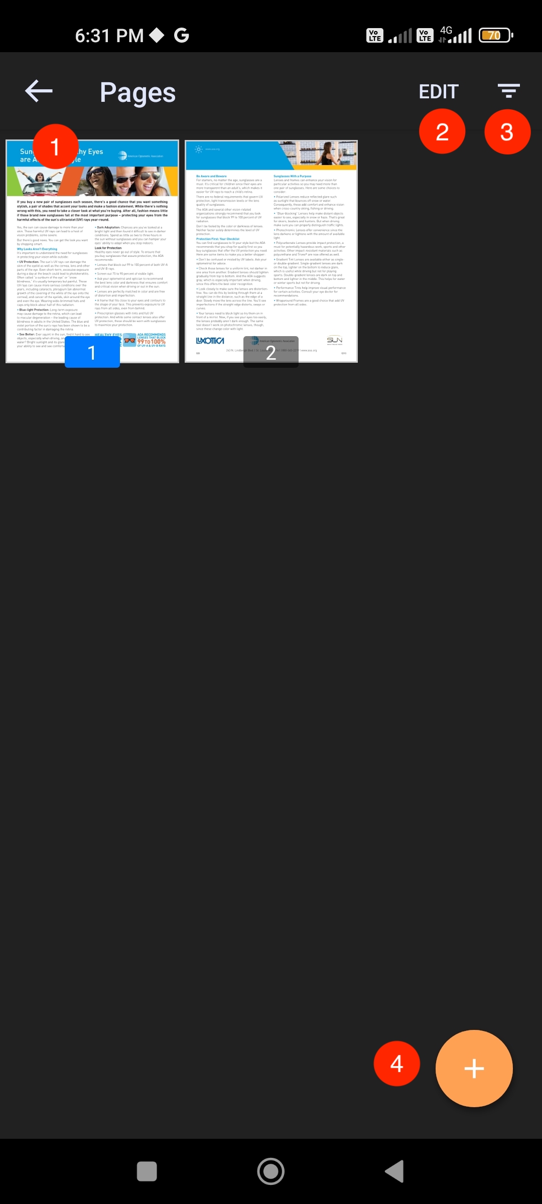 A grid view option can be selected to see all the pages in a PDF, as shown below.