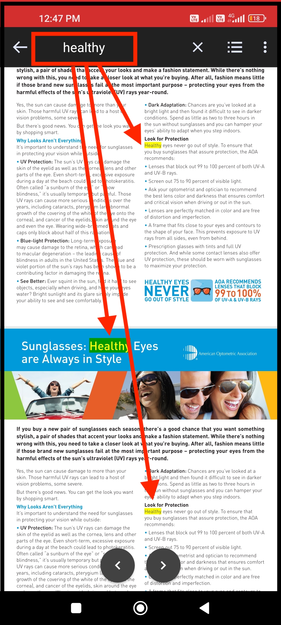 With the help of the search bar, the user can search keywords within the content, as shown in the above image.