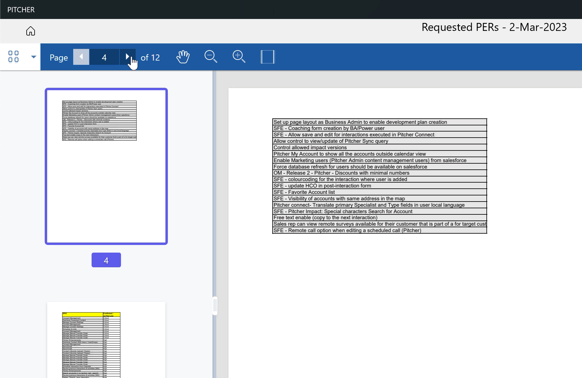 The number of pages to skip when you click the Next or Previous button can be configured in PItcher Admin for the specific PDF file.