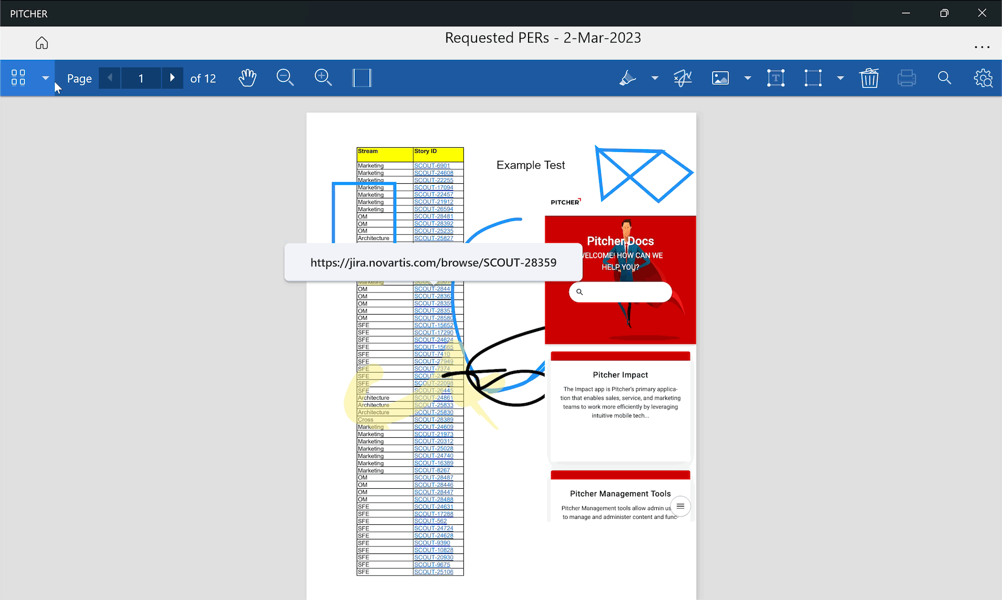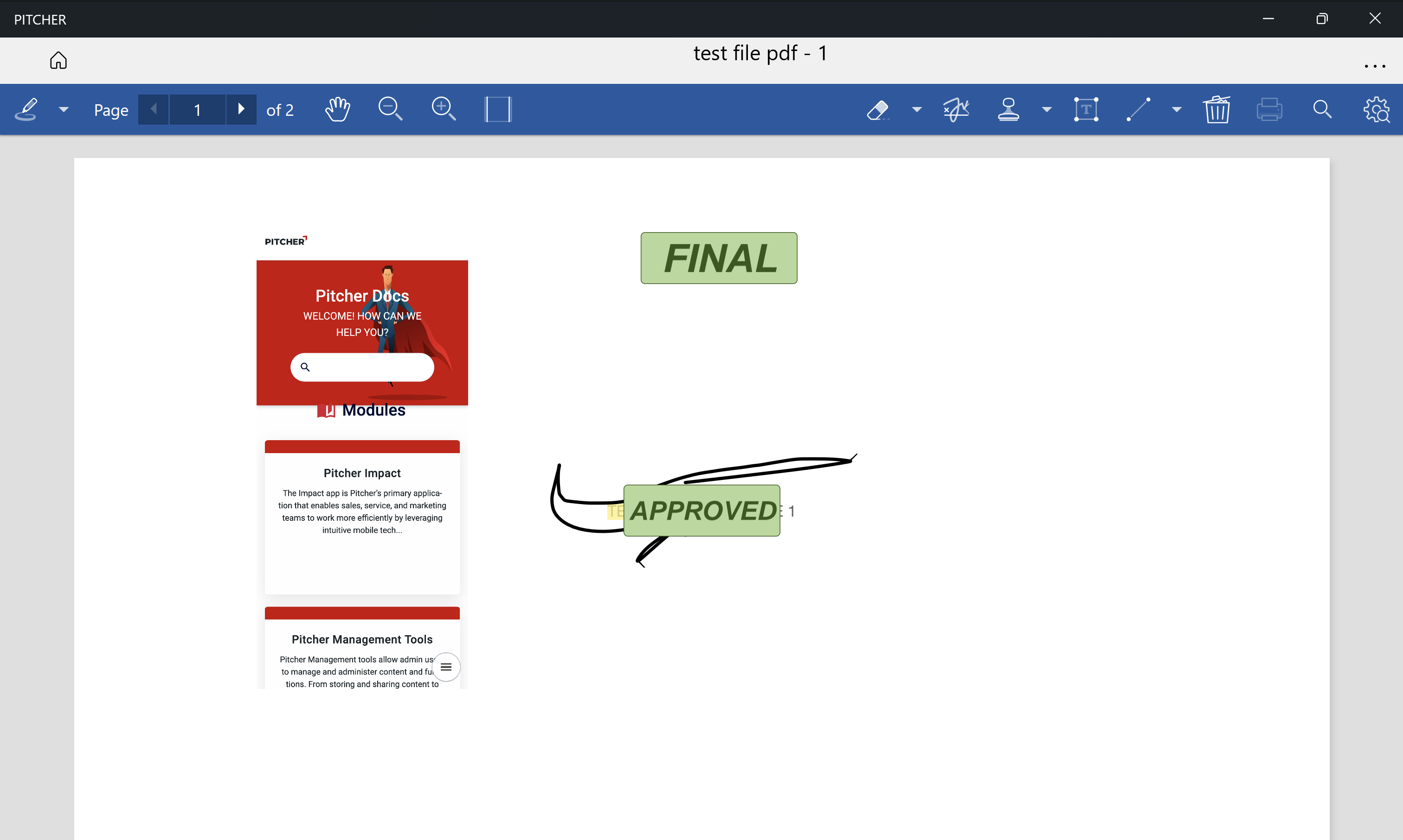 The available annotation tools may differ based on document settings in Pitcher Admin.