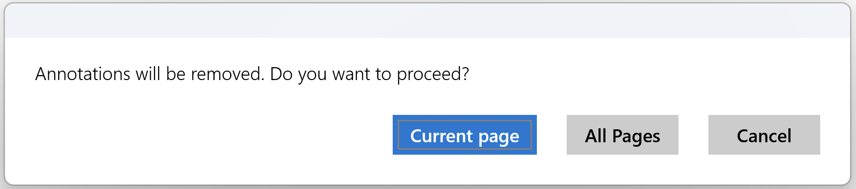 Select Current Page to delete annotations from the current page or All Pages to delete all annotations on all pages.