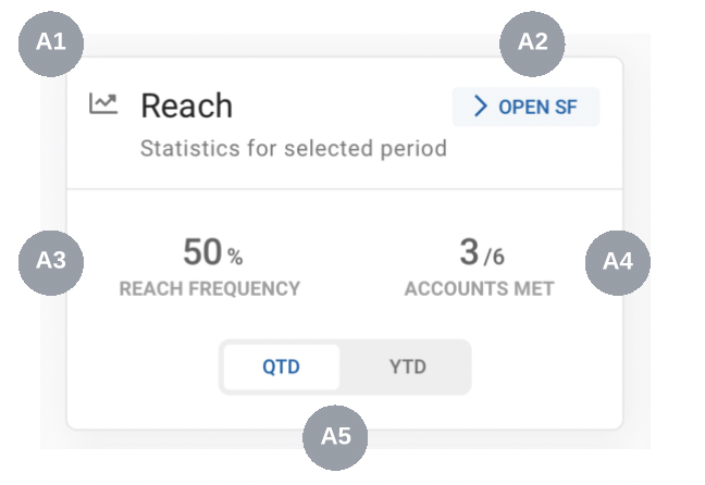 The reach widget shows the following reach statistics for the sales representative so that they can track their weekly goal: