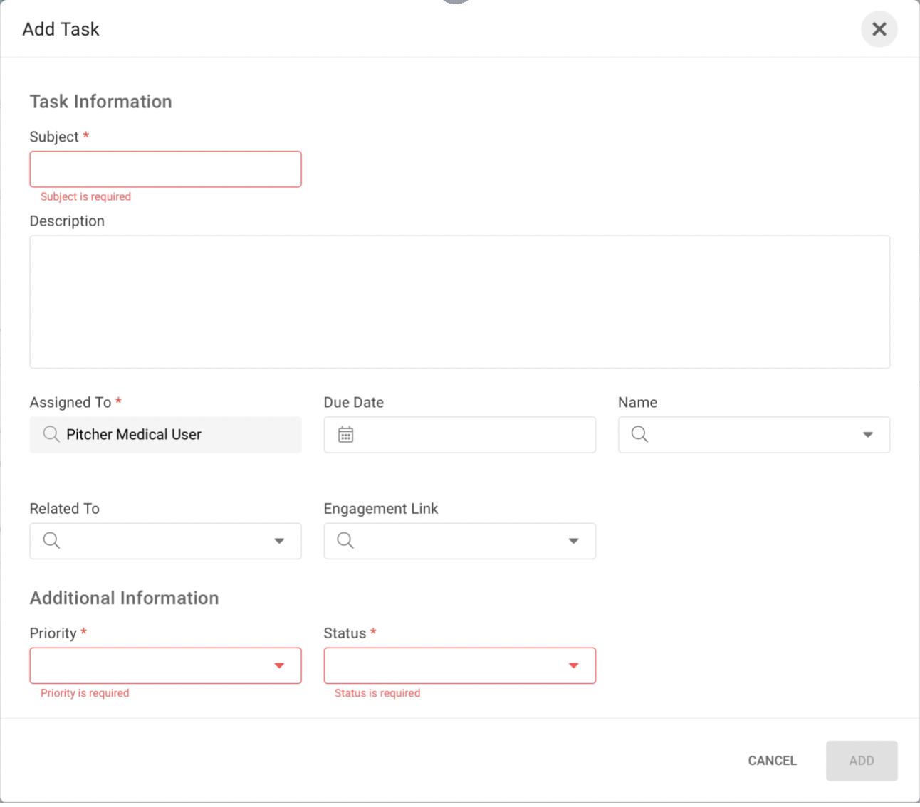 You can click on the “+ ADD” button to bring up the task-create form. Please fill in the following fields to create a new task.