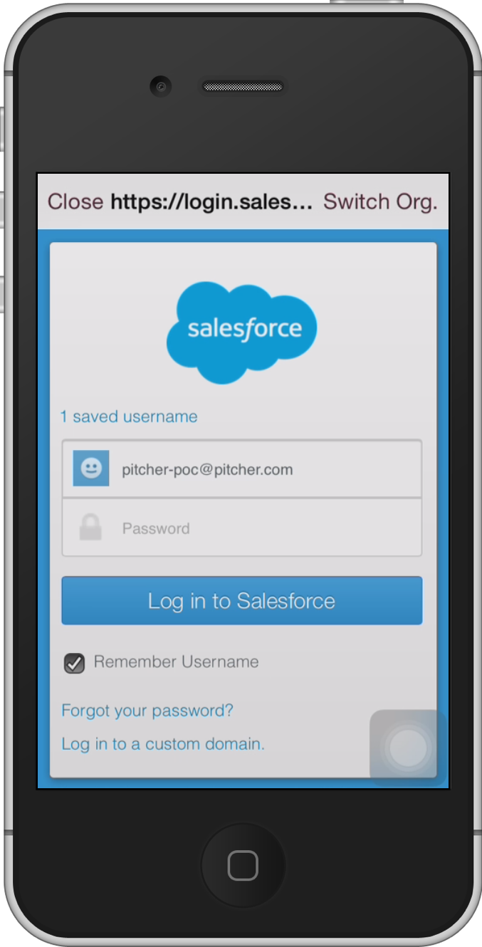 If "Auto Sync with CRM At Launch" is activated in your Pitcher settings and you have an internet connection, the app will immediately try to connect to Salesforce.com and the login window will appear if you hadn't logged in previously.