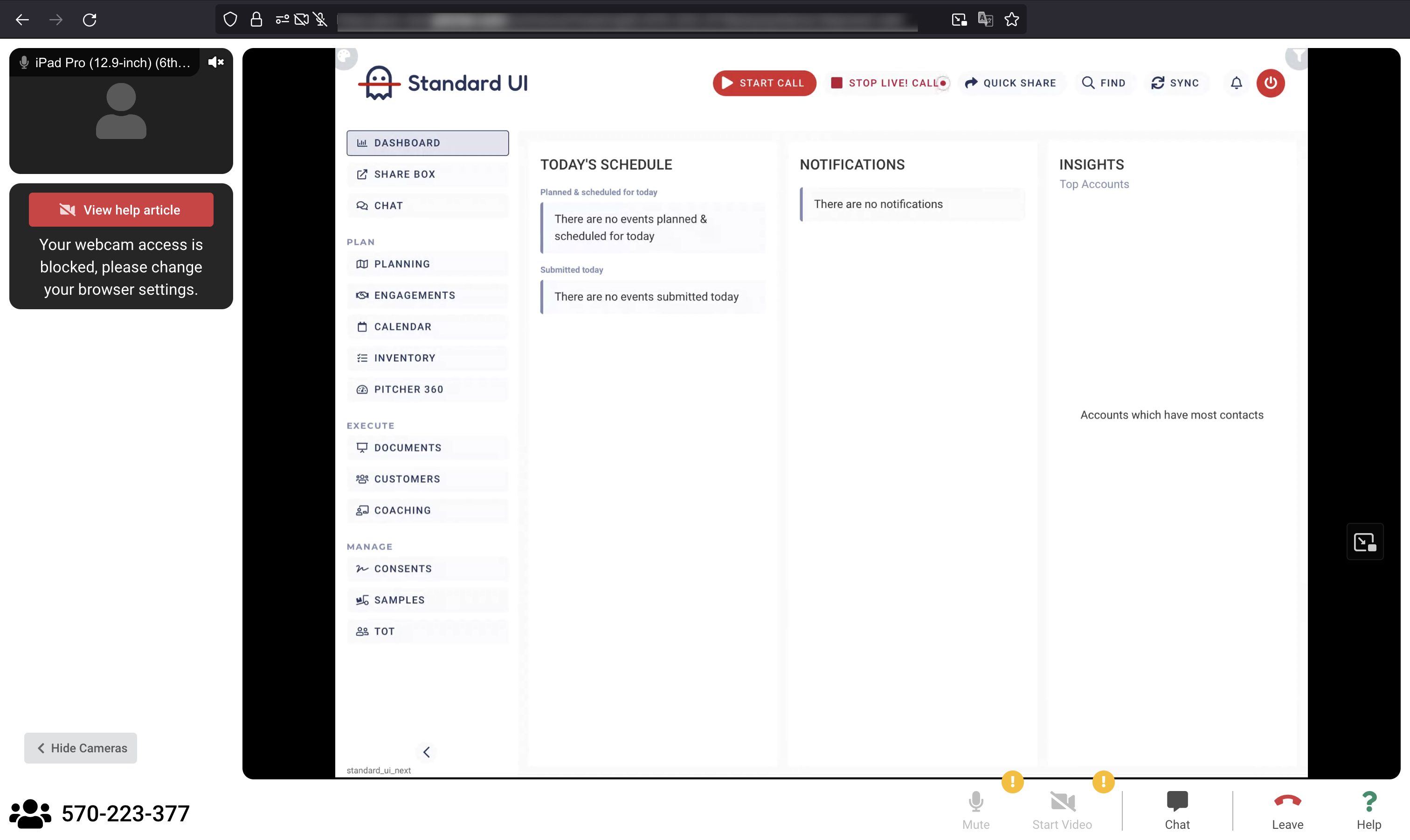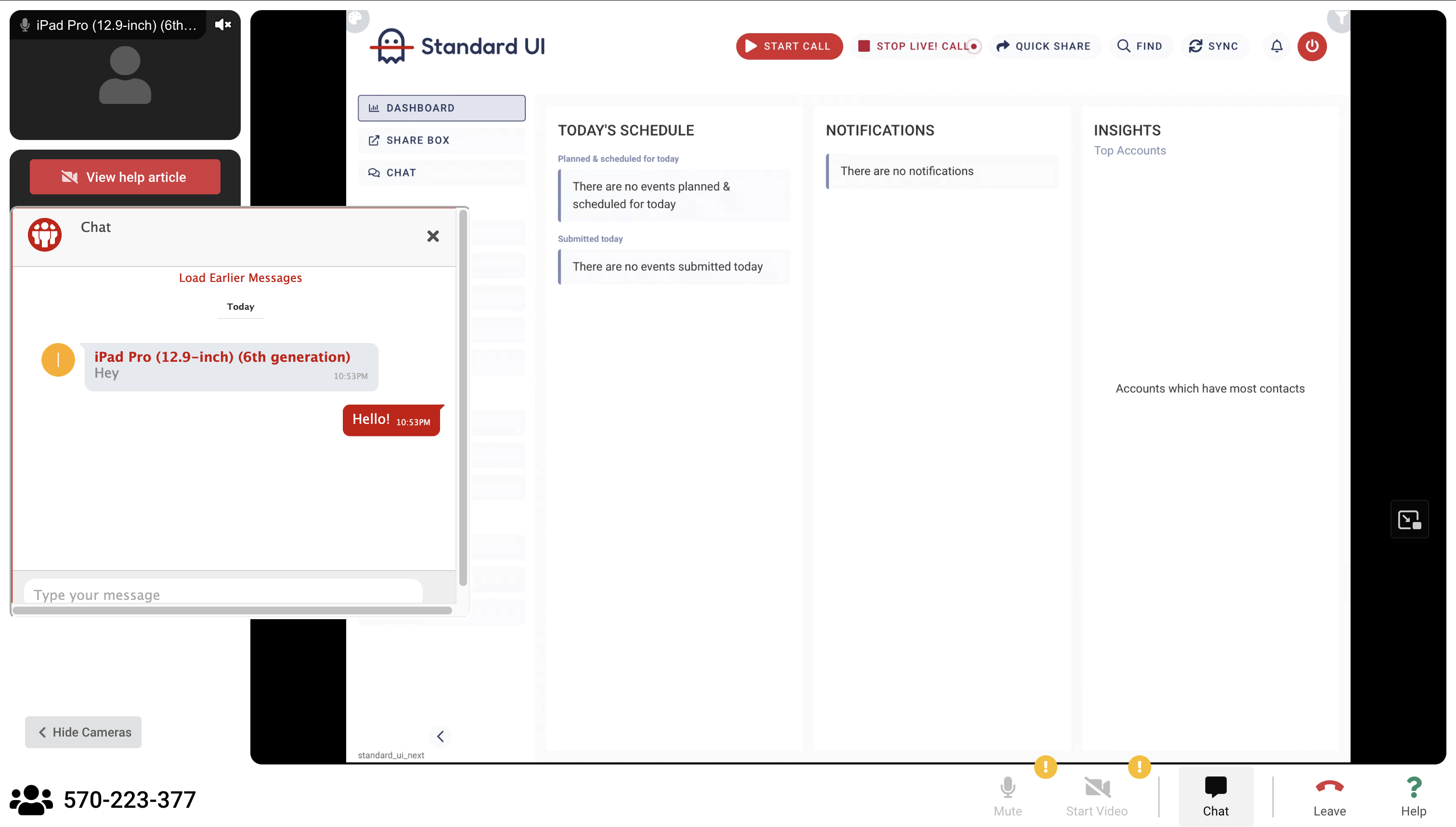Tap Start Share to open the iPad Camera and Microphone. Tap on 'Allow' if the system asks for permission to use the camera and microphone. Now, you can begin sharing your screen with the customer.