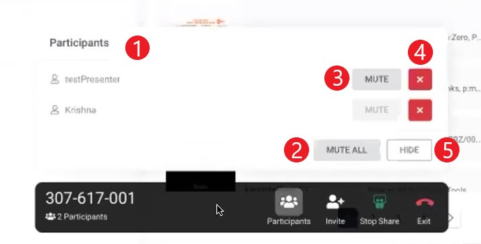 The End Session button ends the session on the participants' side.