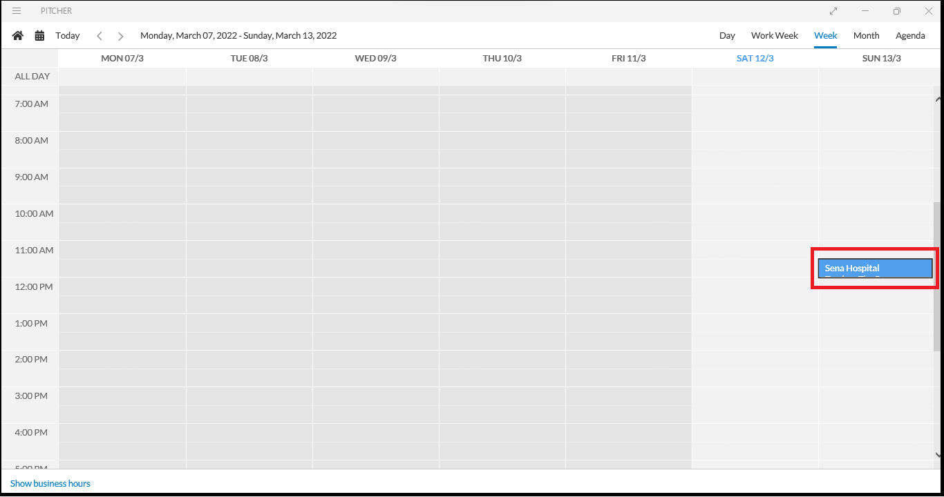 A planning calendar will open and the user can select the date and time for the call. The calendar view can be changed on the basis of Day, work week, month or on the basis of agenda. The vertical section displays time, while the horizontal section displays the days. To open a pre call form double tap on the desired day and time (see image below).
