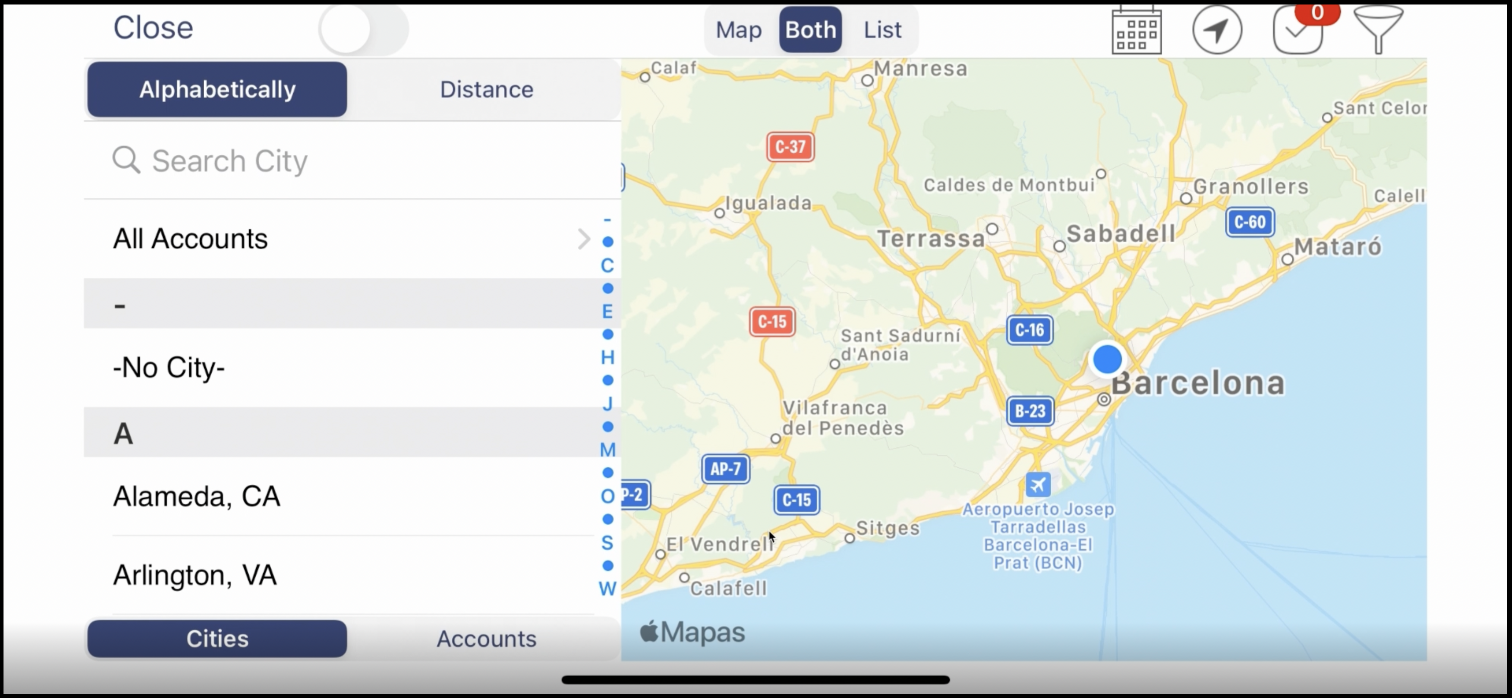 However, in portrait mode map view is not available while in landscape mode the map can be viewed as shown below.