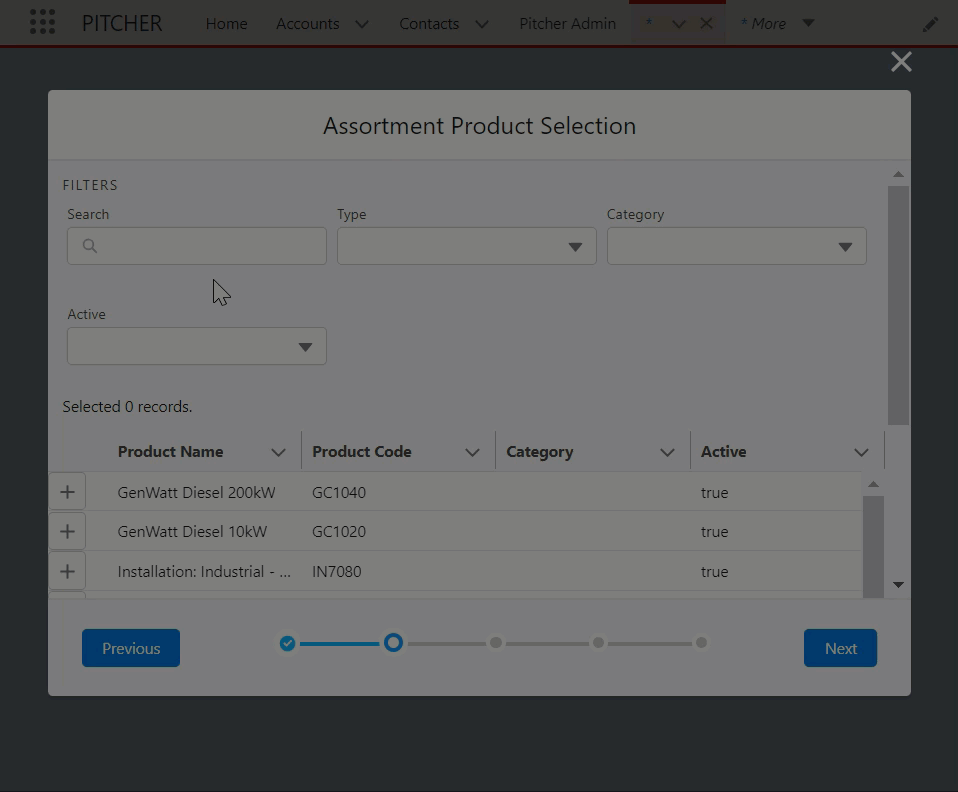 Click Next to move to the Product Selection page and select the products you would like to add to the assortment.