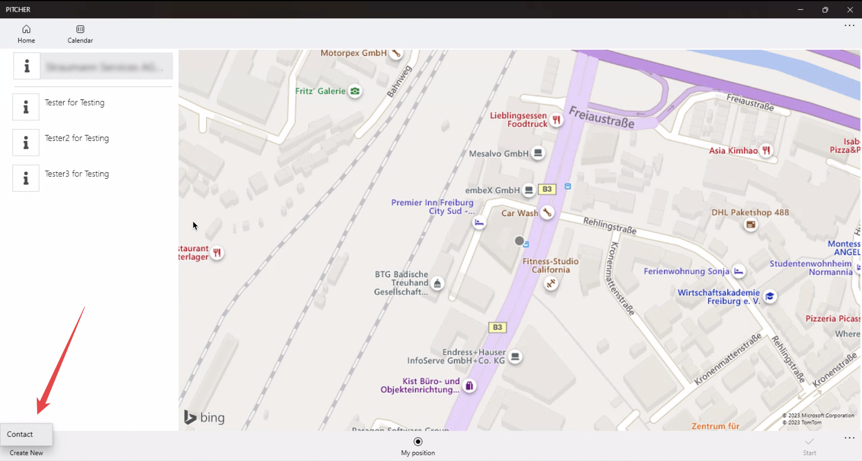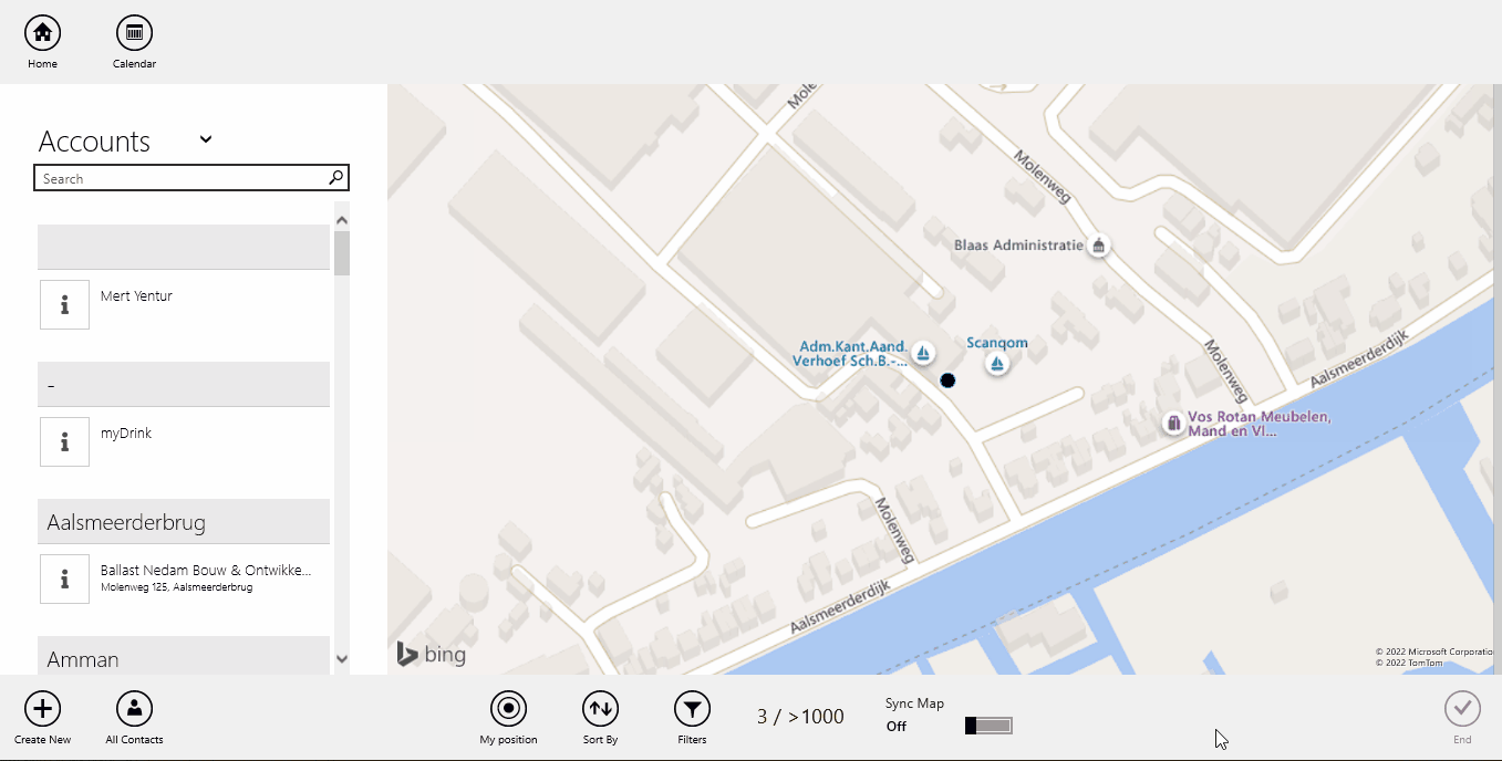 Tapping on the pin will show the account contact information.