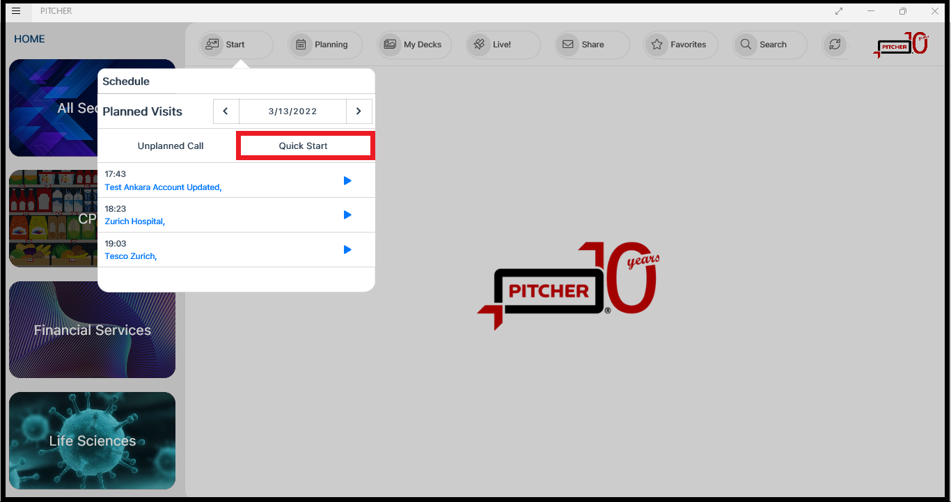 Planning Quick Call allows the user to schedule the trips or routes by selecting several accounts and providing the best optimization route.