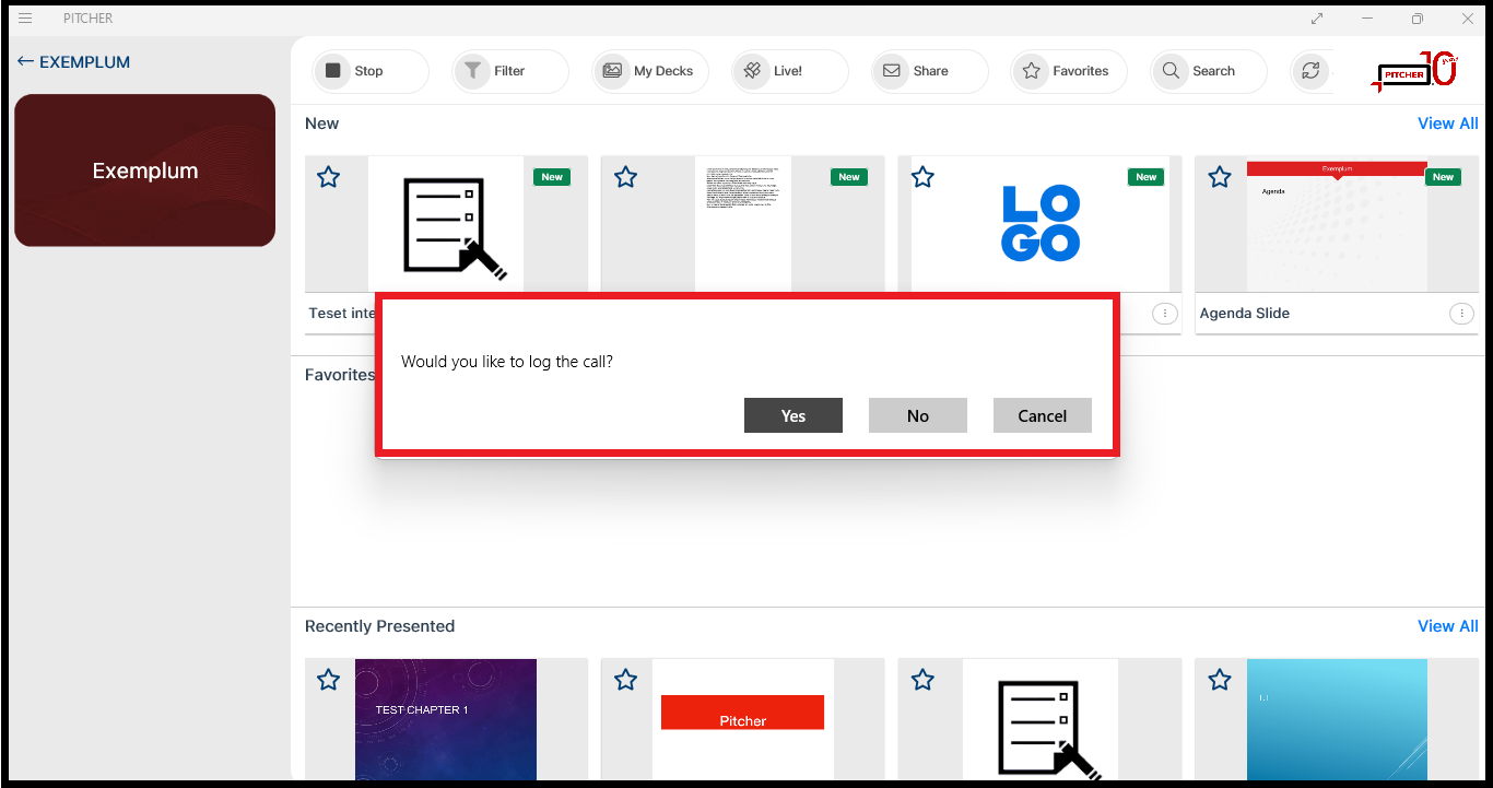 Once the call has been stopped, the user will be asked whether they want to log the call or not.
