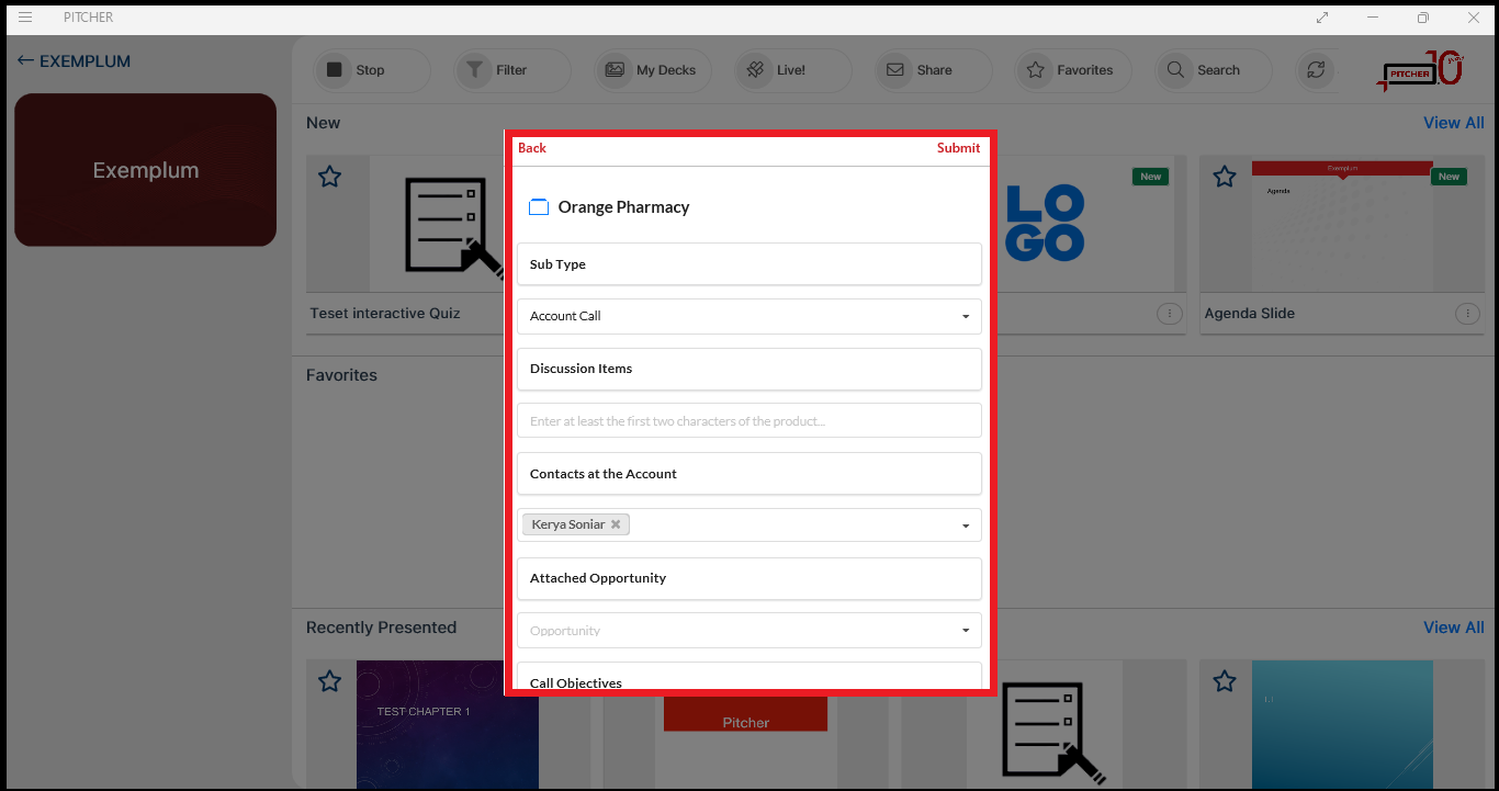The user can fill in the post-call reporting form and then submit the call.
