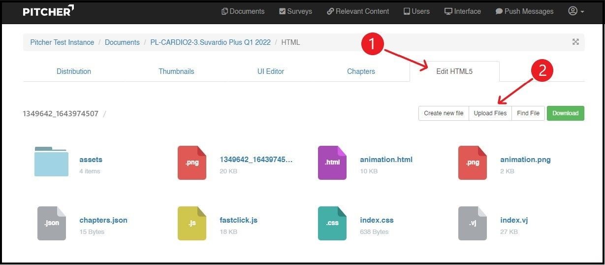 Follow these steps to edit the HTML5 files of the selected document: