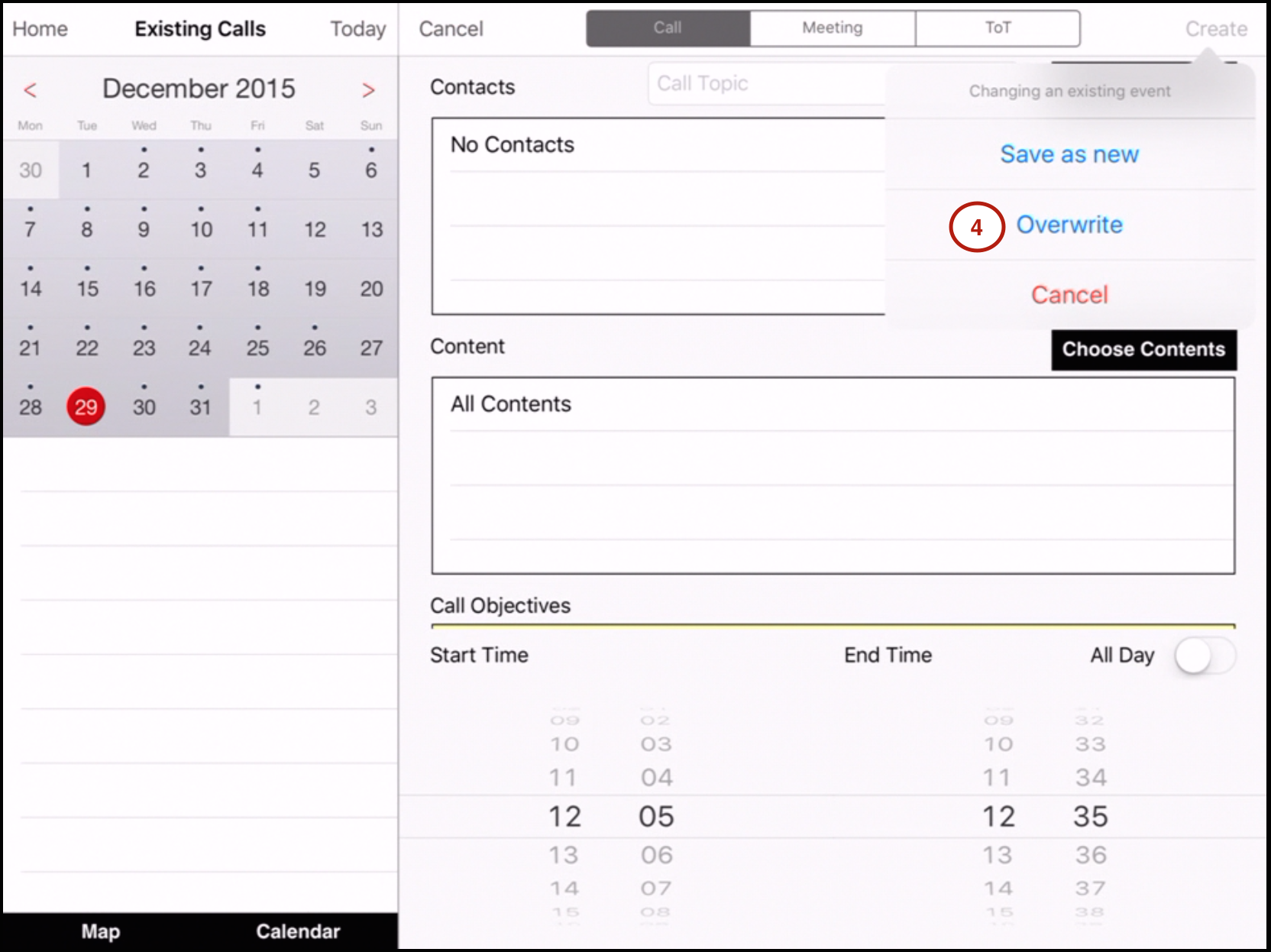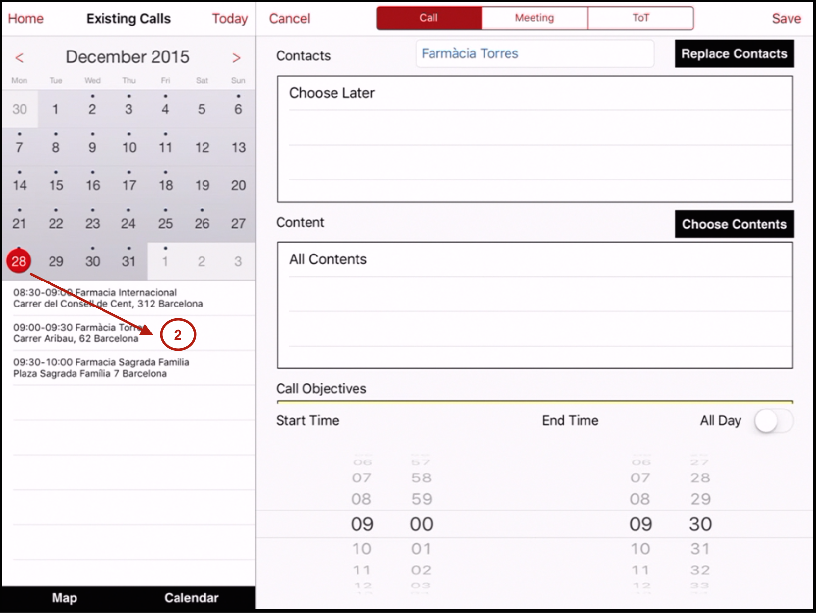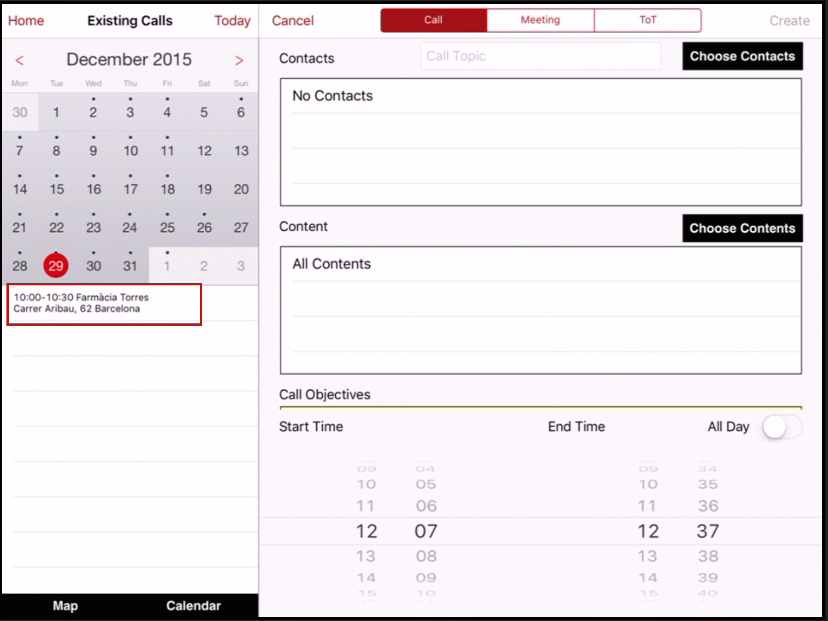 Note: call can be replanned with ical drag & drop functionality but call will not synchronized until user execute the call