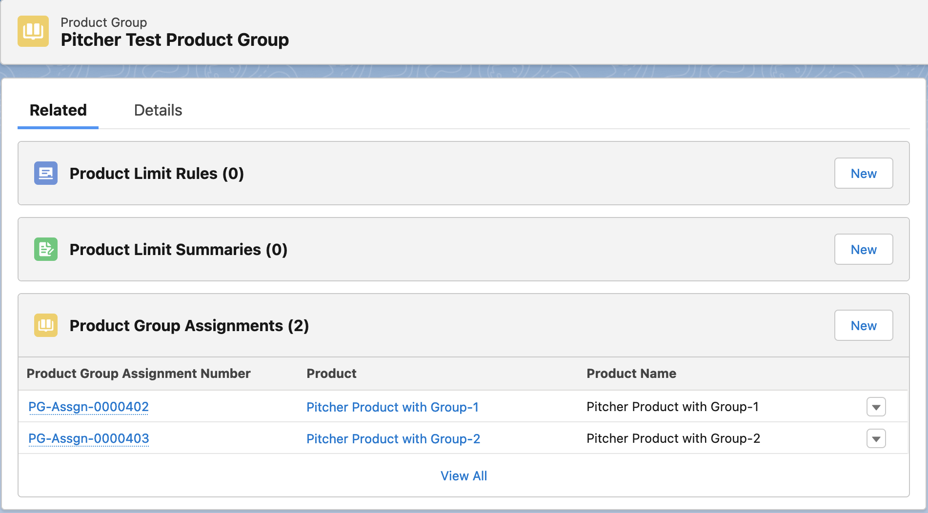 The third and fourth items belong to a group NL Pitcher Test Product Group, but the group does not have any limit rule, while products have their own rules, so it’s similar to the first case; own limitations apply.