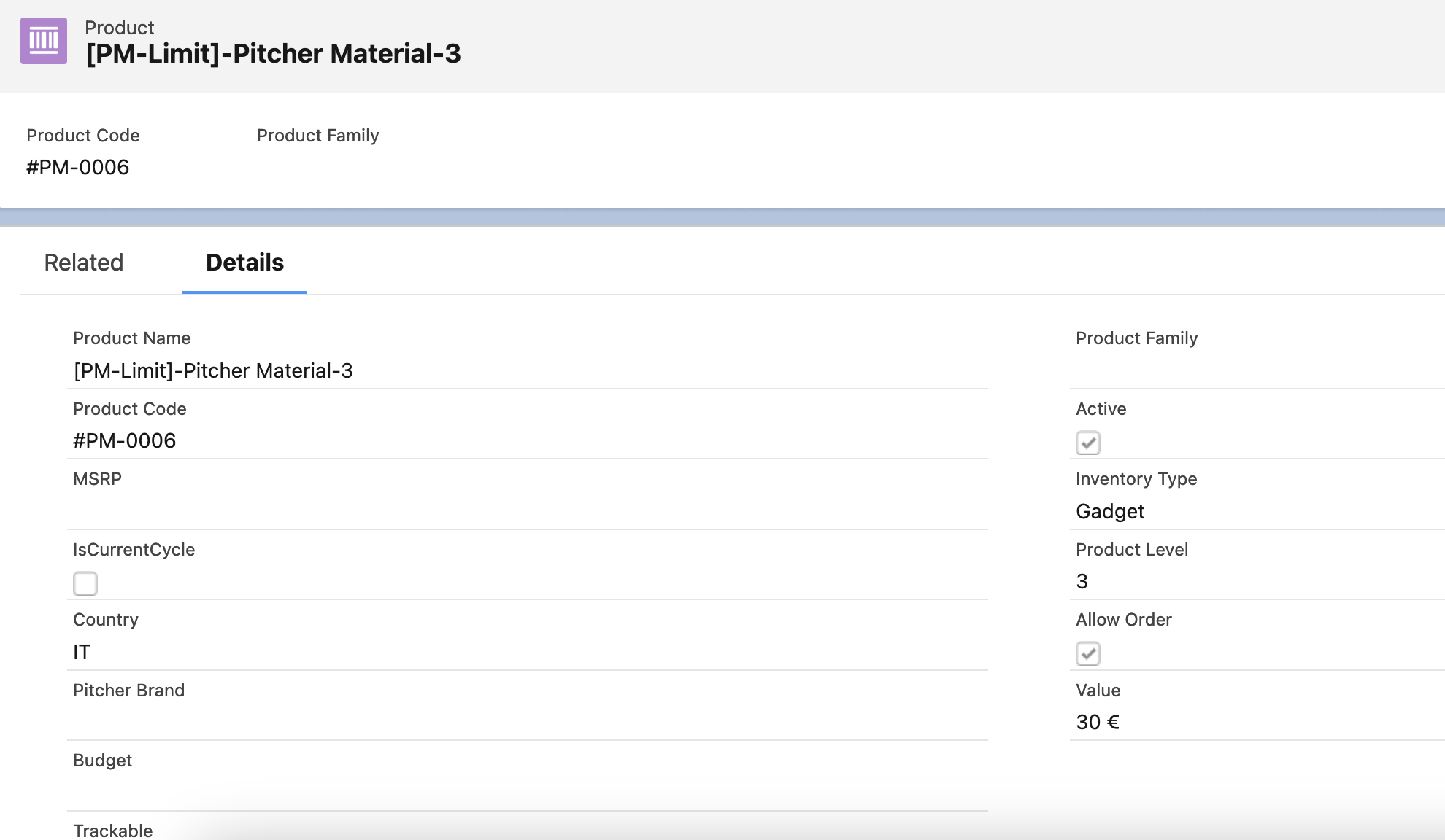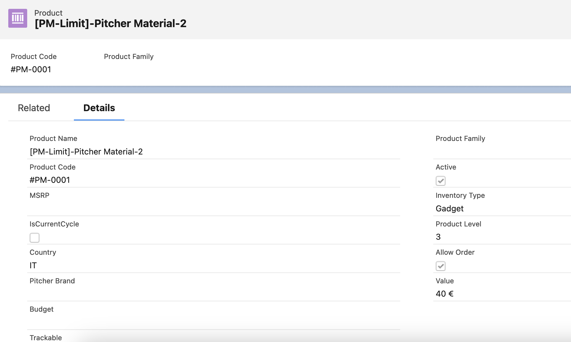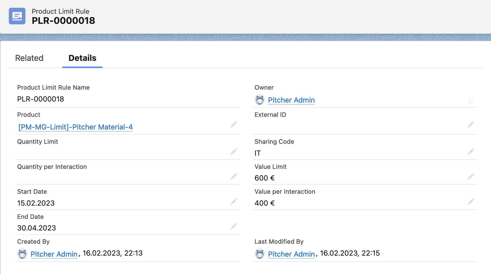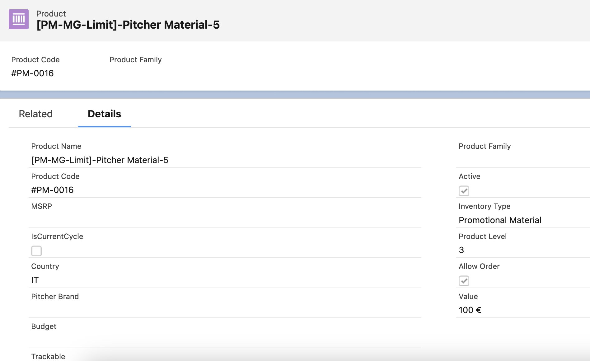 Value Limitation has the same rules as quantity limit rules above. The only differences are, as indicated above, only apply for non-sample products, and value defines products value which can be set via the Value field (PCH__Value__c).