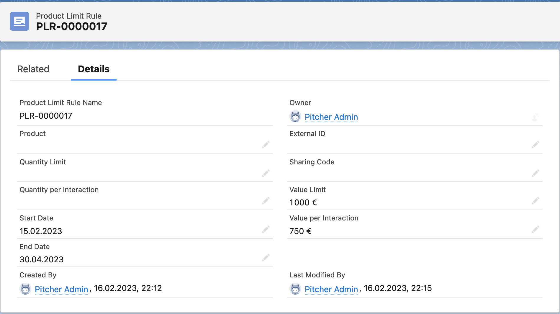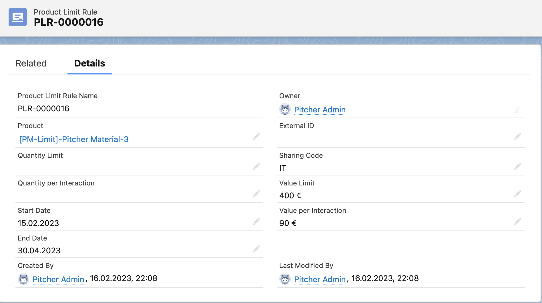 The limit rules are applied in Pitcher Samples after a sync from Salesforce.