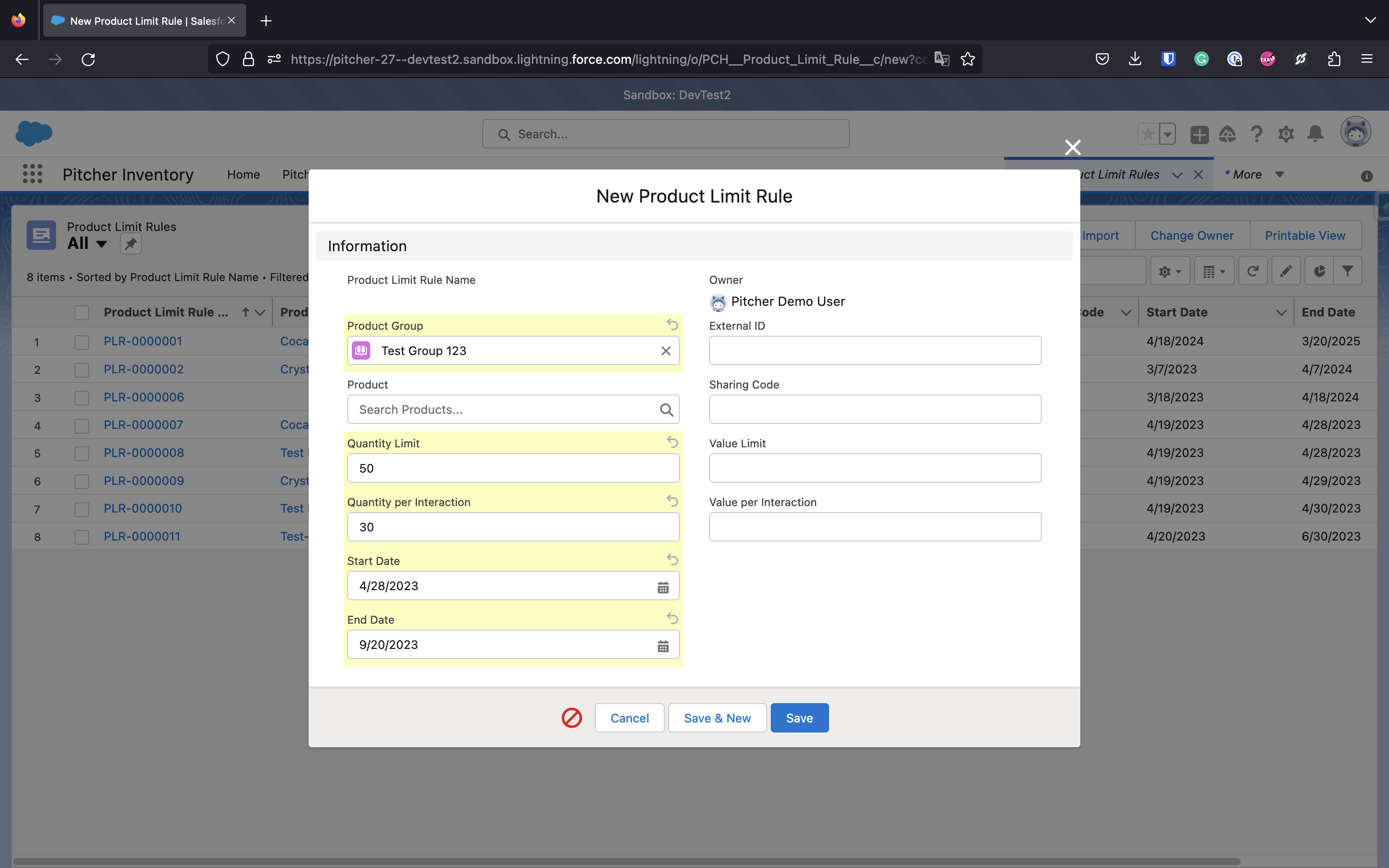 Create a new Product Limit Rule in Salesforce and define one or more of the limiting options available: