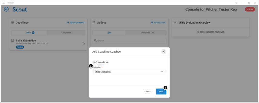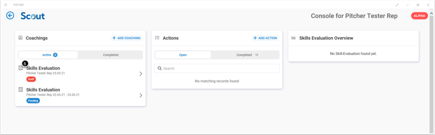 Click on the SAVE button to create a new Skill Evaluation record. The new Skill Evaluation record should now show up in the Coachings tab.