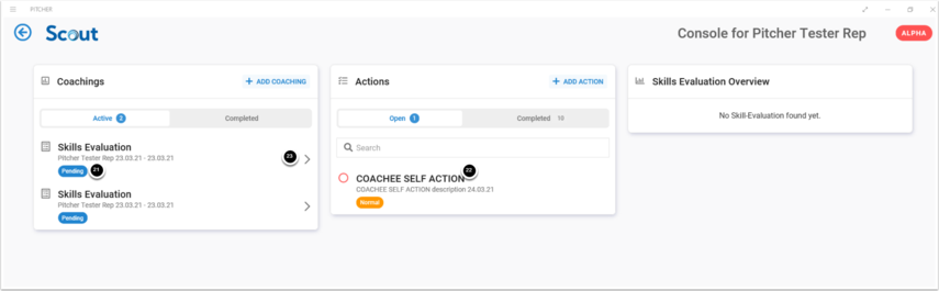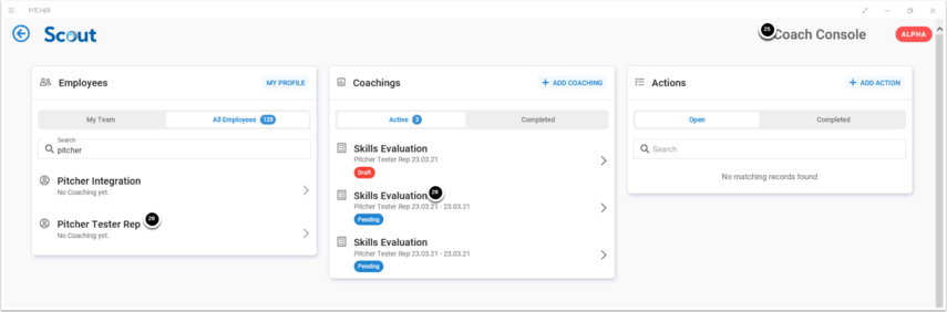 Click on the “Submit Coaching" button to save the coaching, and the evaluation status should now change to Pending. Also, any tasks created during Self Evaluation should be visible in Open Tab on the Actions Card.
