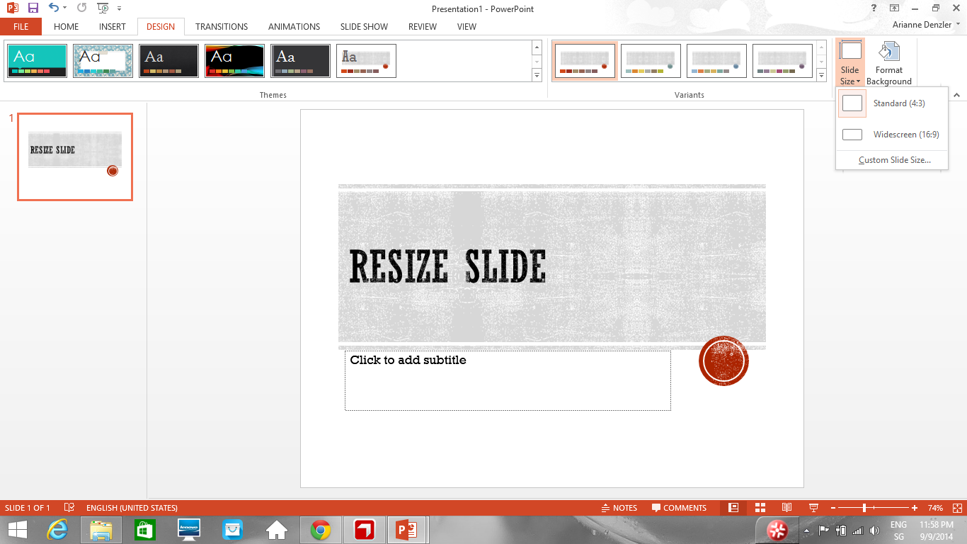 Be careful, the slide size change might have other implications on your overall layout and potentially move text boxes/images and other objects as you change the format of the slide.