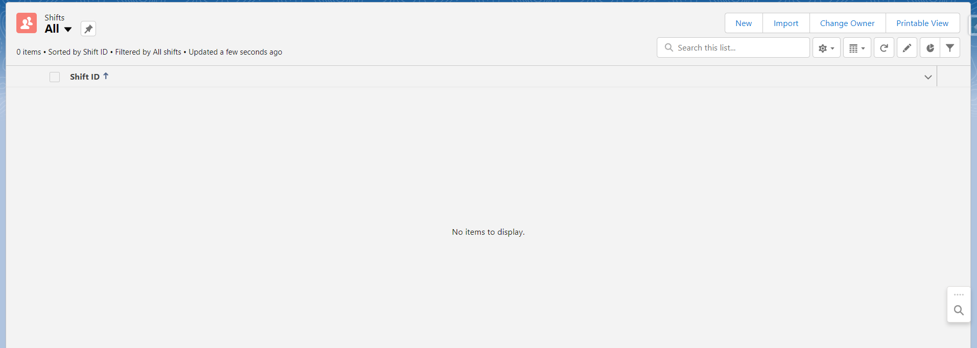 Shift (Shift__c) object stores and tracks the Shift information and details for each Pitcher Teams user.