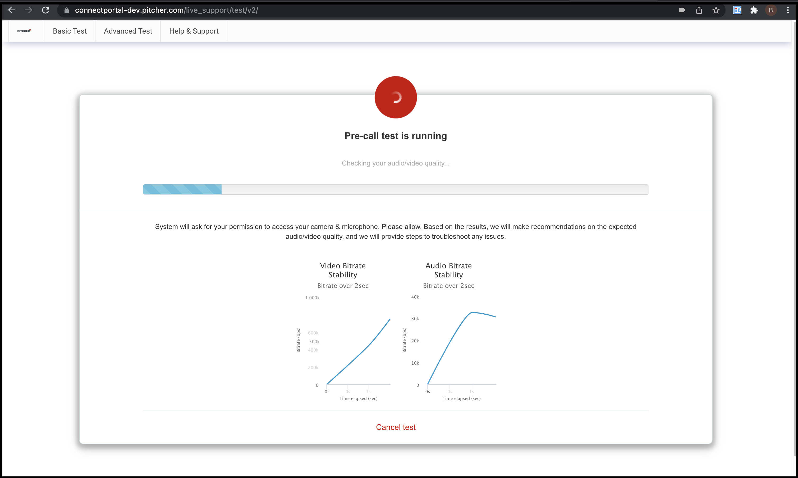 panel the sales representative will be redirected to a new window which will begin the basic test.