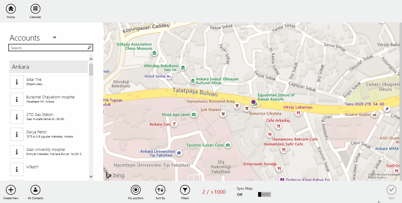 In the next screen the user can select account and then contact from that account. Clicking Start will start the call and the user can present the content in the call.