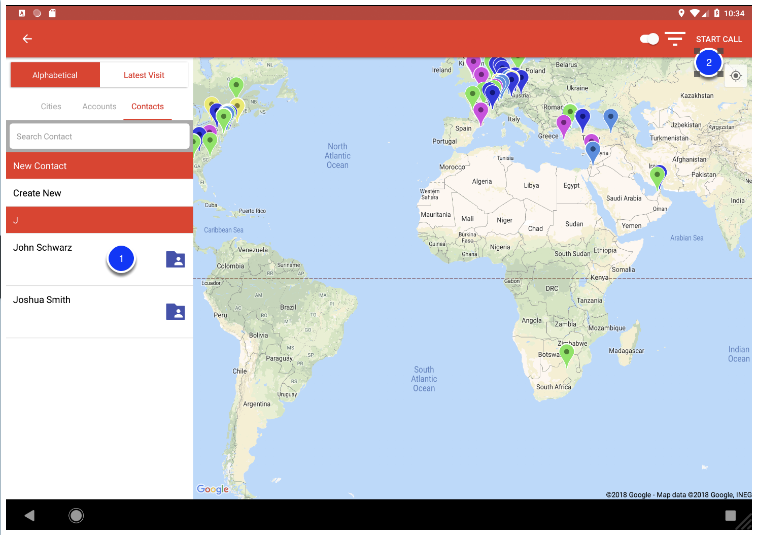 After account has been selected, select the contact and tap Start Call to go back to the homescreen.