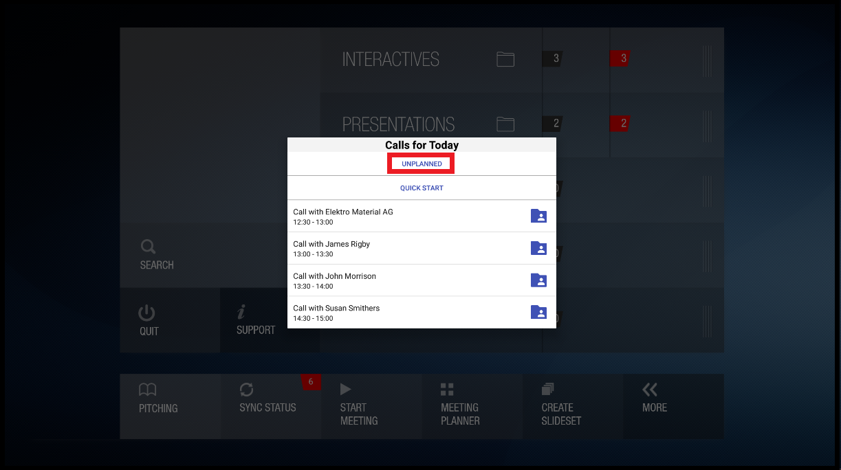 Sometimes it may be required that a sales representative has to execute an unplanned call. To begin tap Start or Start Meeting button and then tap on Unplanned Call