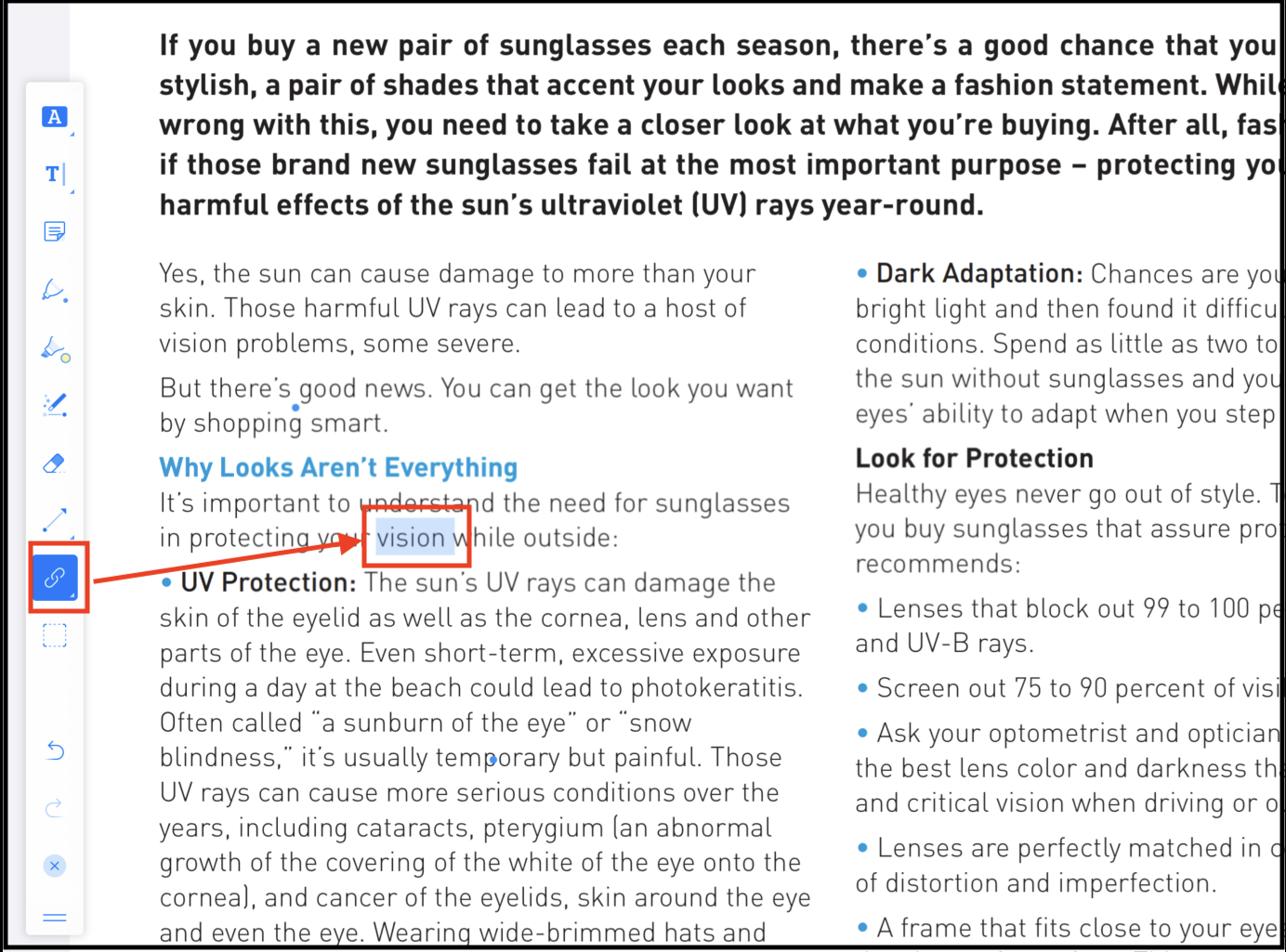 Example of selected text after squiggle is applied.