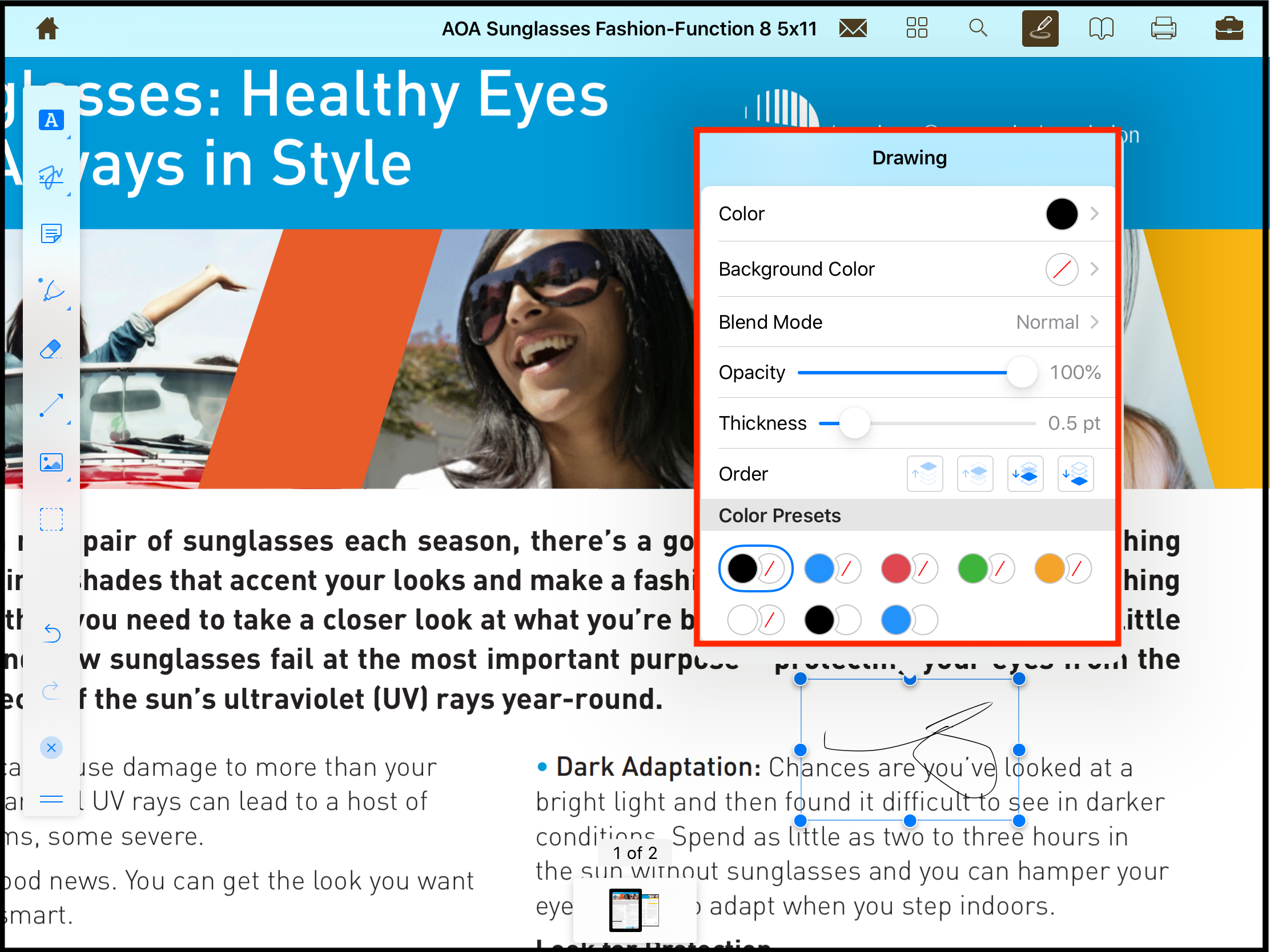 Again long tap on the text tool and select the signature option. It is worth noticing that the icon would change on the annotations tool panel and this time no color palette would be activated. A new window would appear and here are the details: