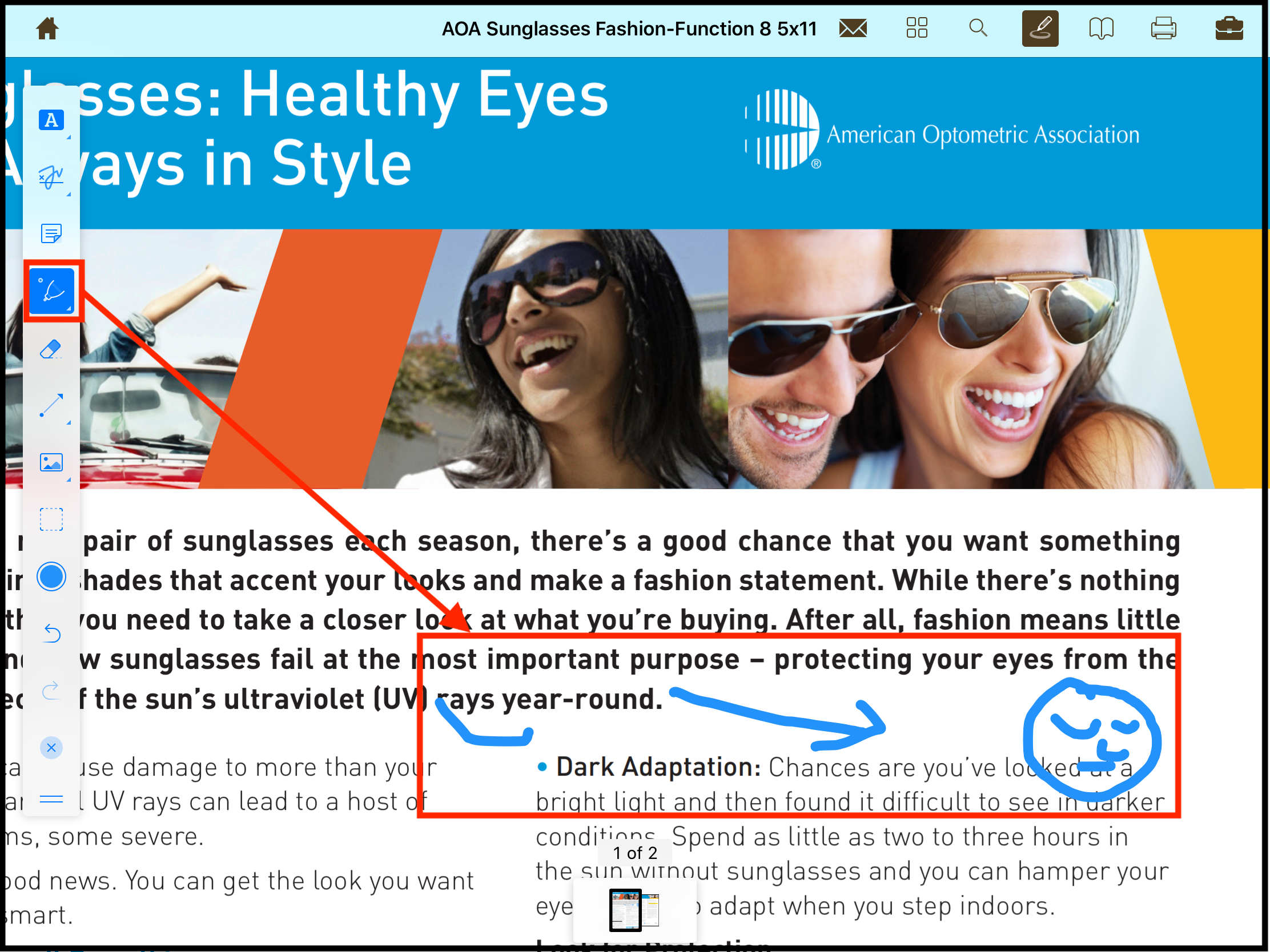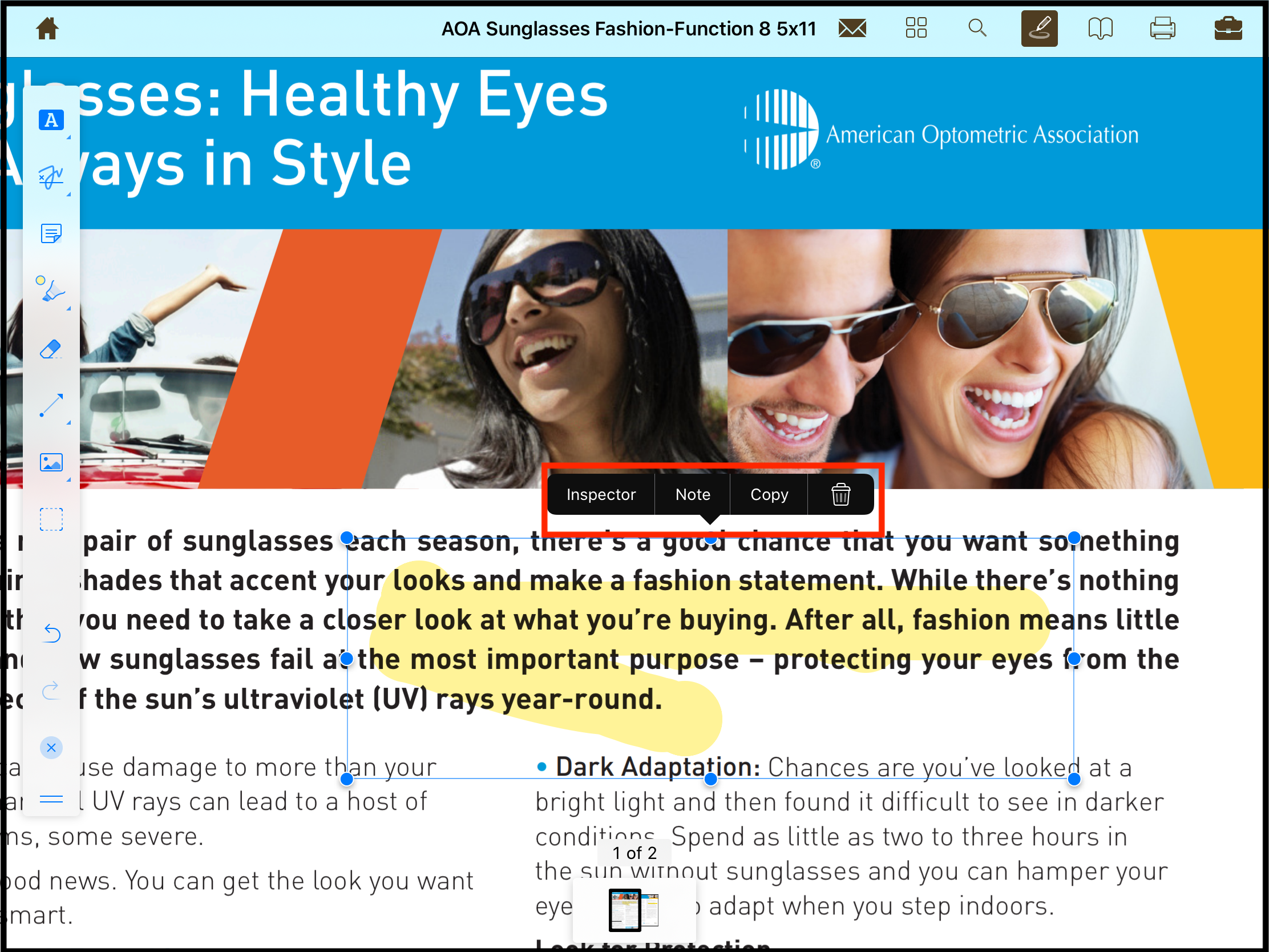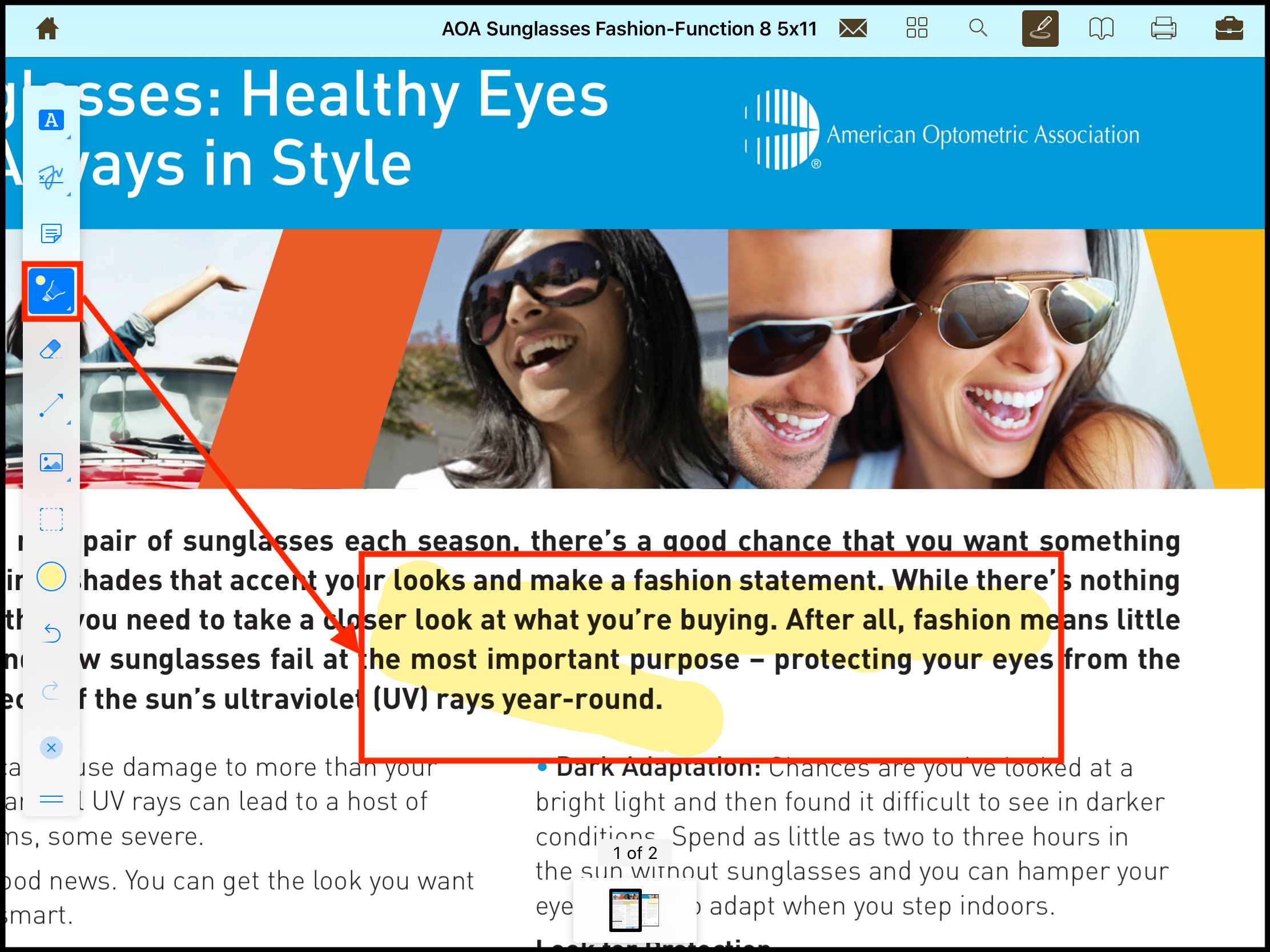To edit and remove the highlighted section in the page, unselect the highlight tool and tap near the highlighted area.