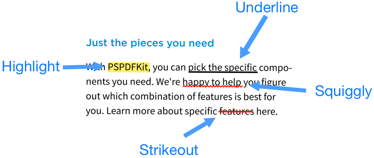 Highlight, Underline, Strikeout, Squiggle