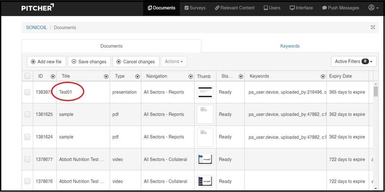 Once the file is uploaded it will be updated in the Pitcher Admin with the file title and Uploader name.